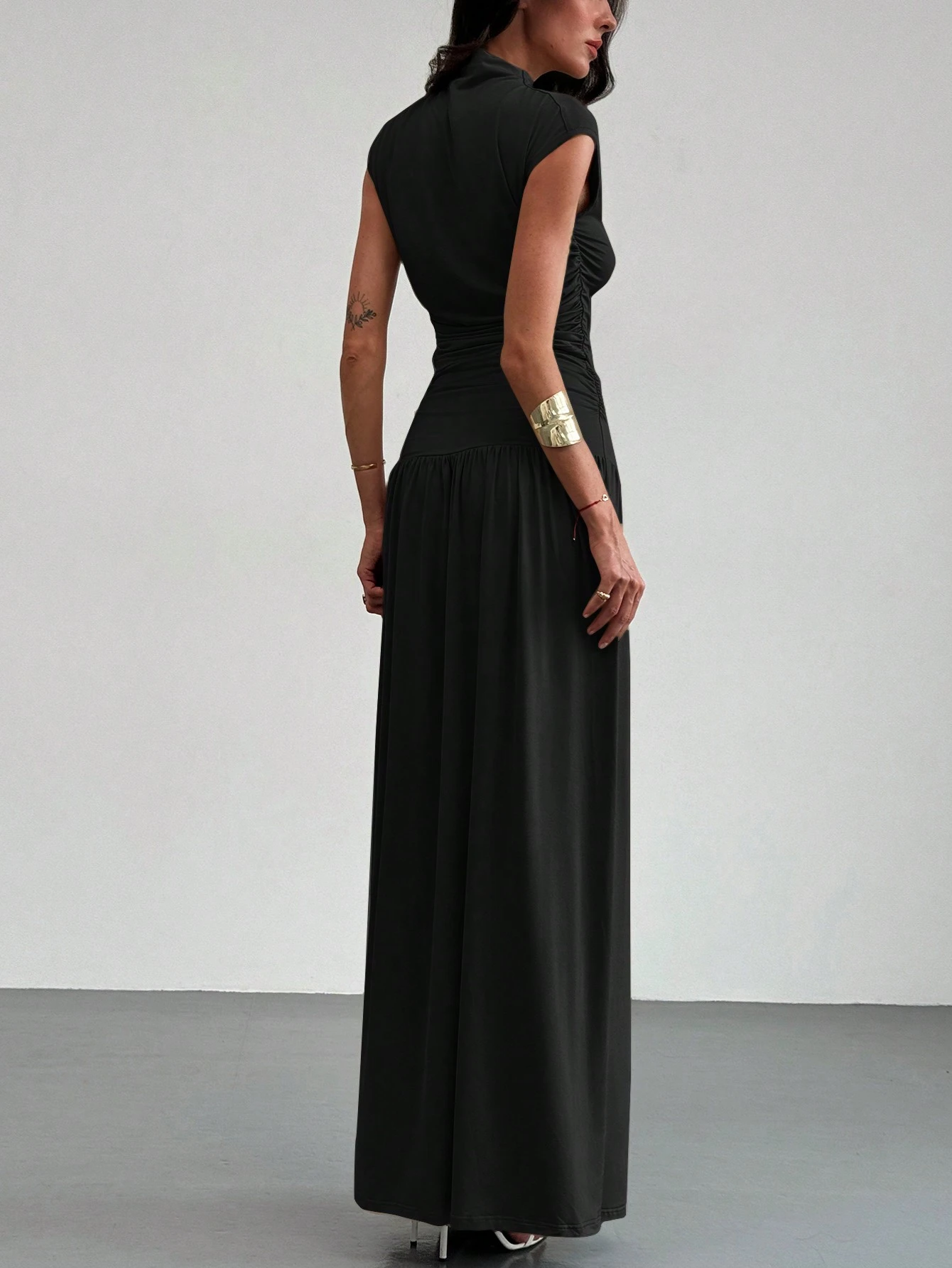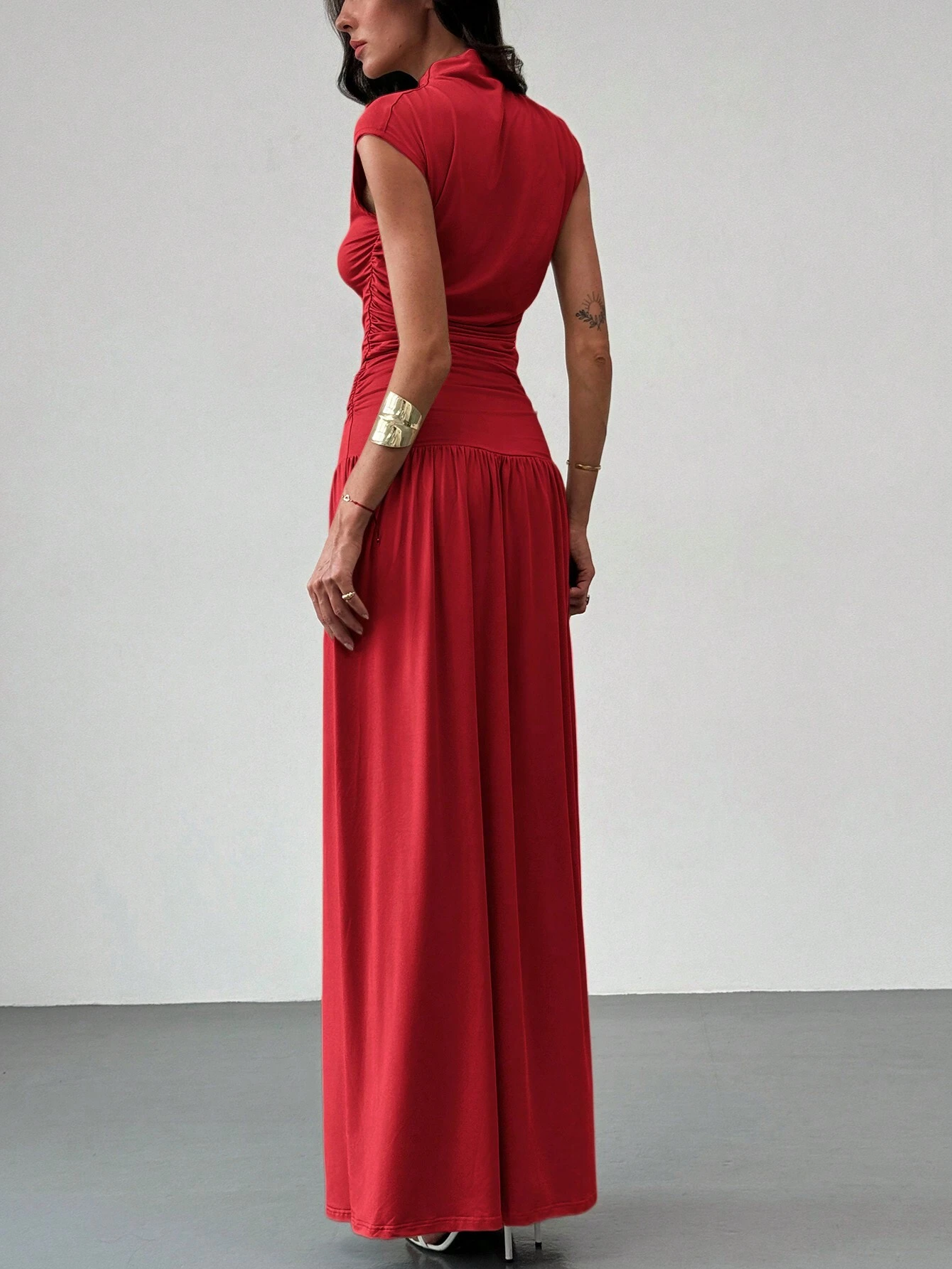 2PCS/SET STAND COLLAR RUCHED BLOUSE AND HIGH WAIST SKIRT SET