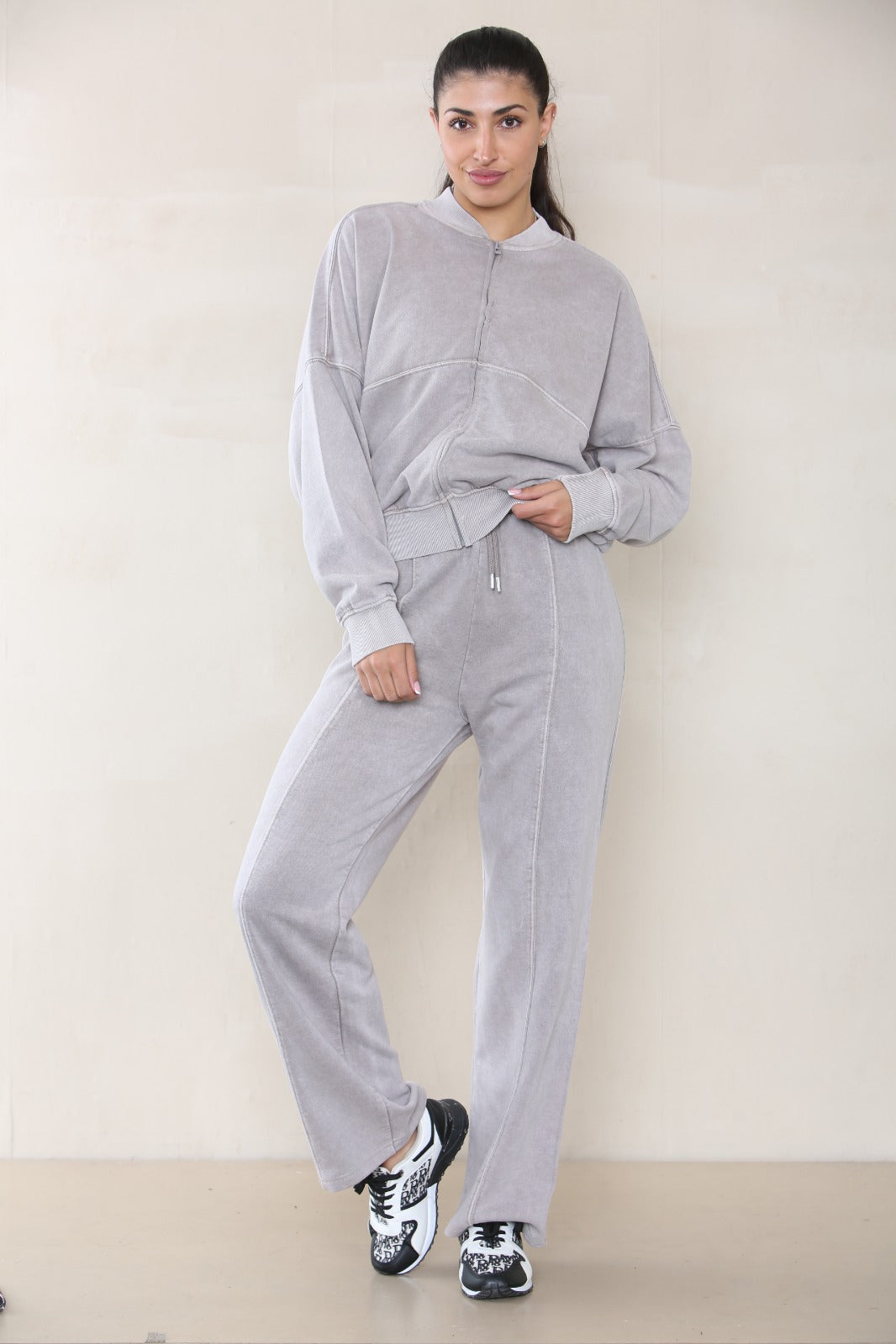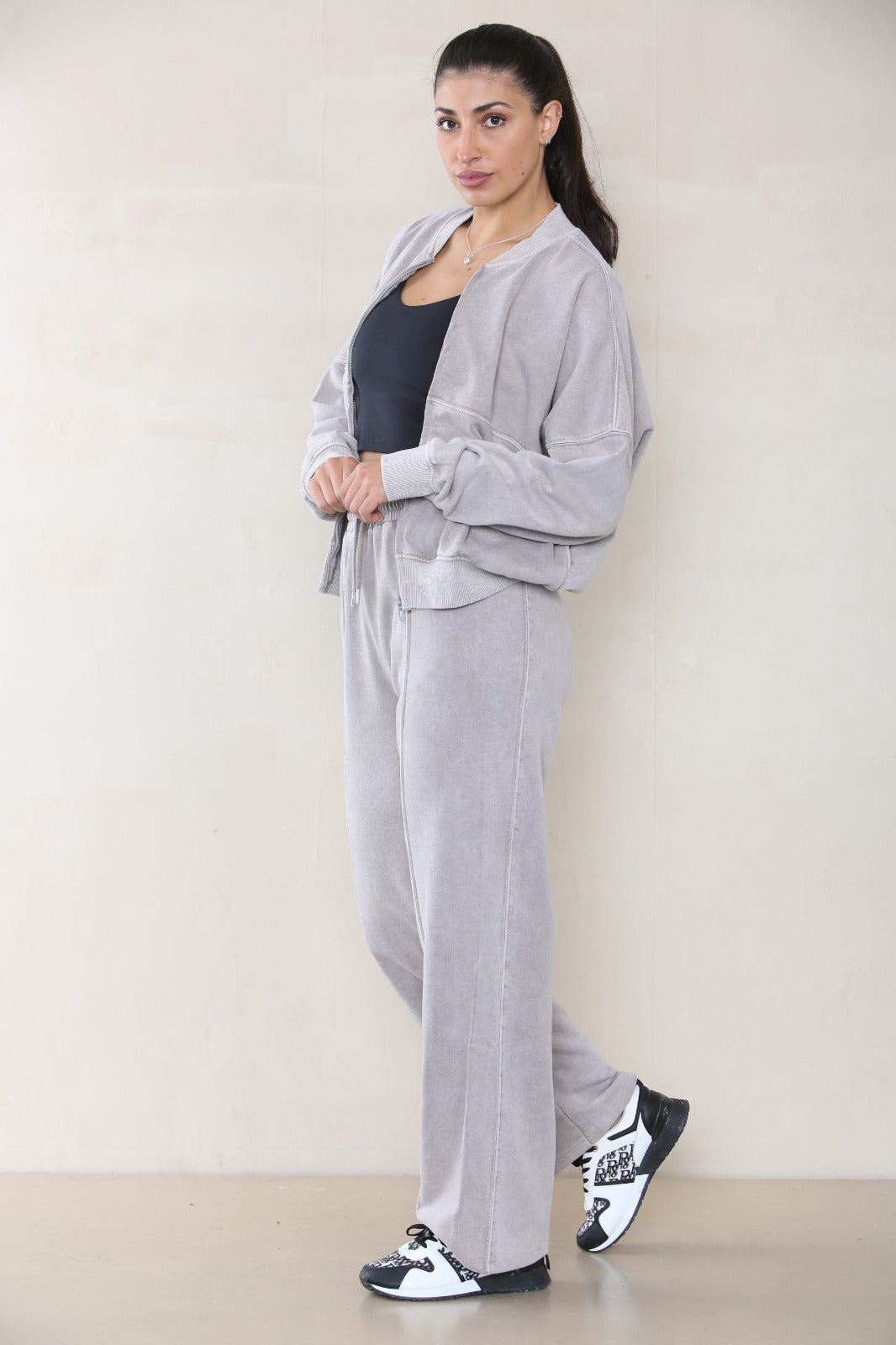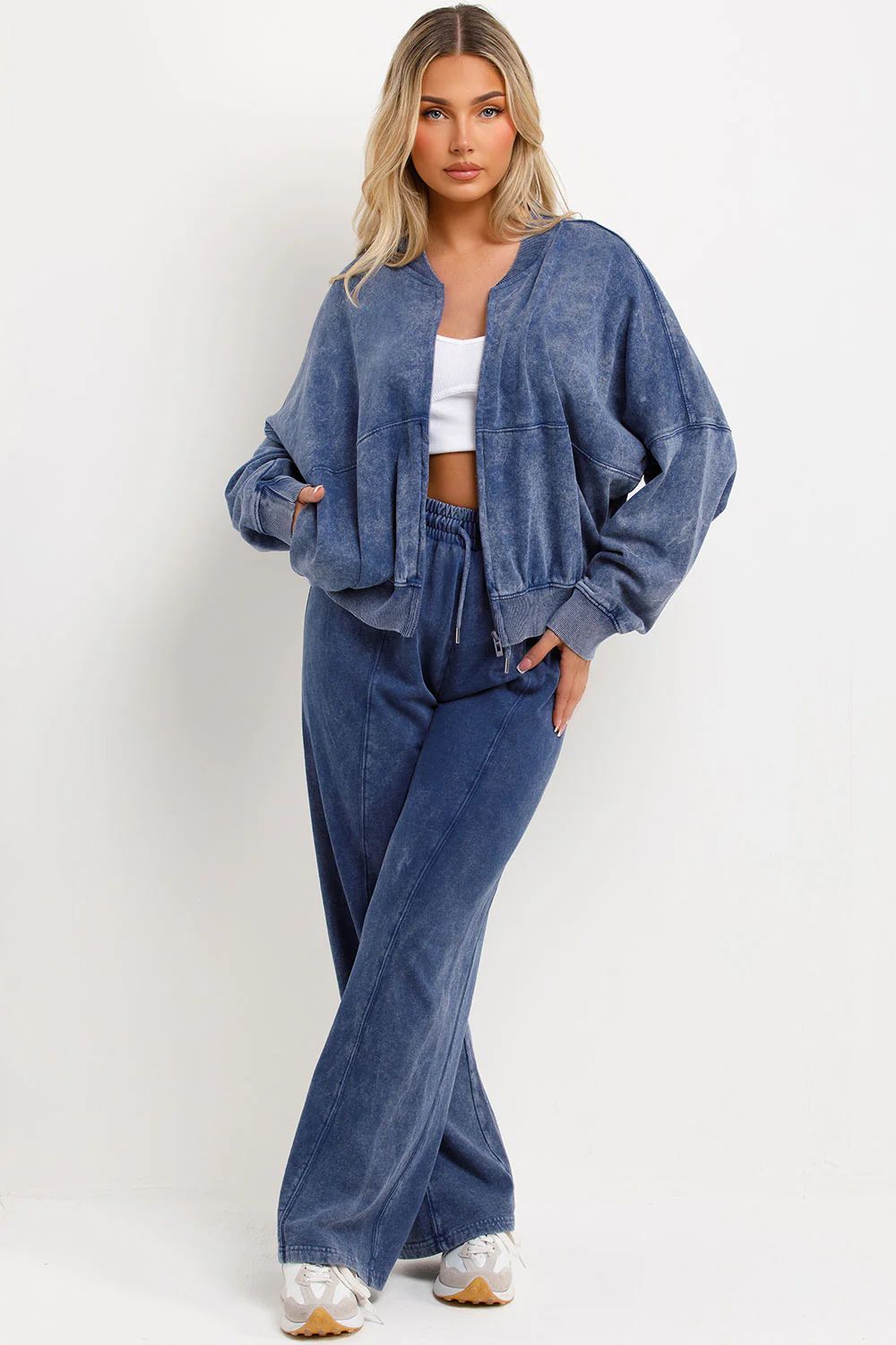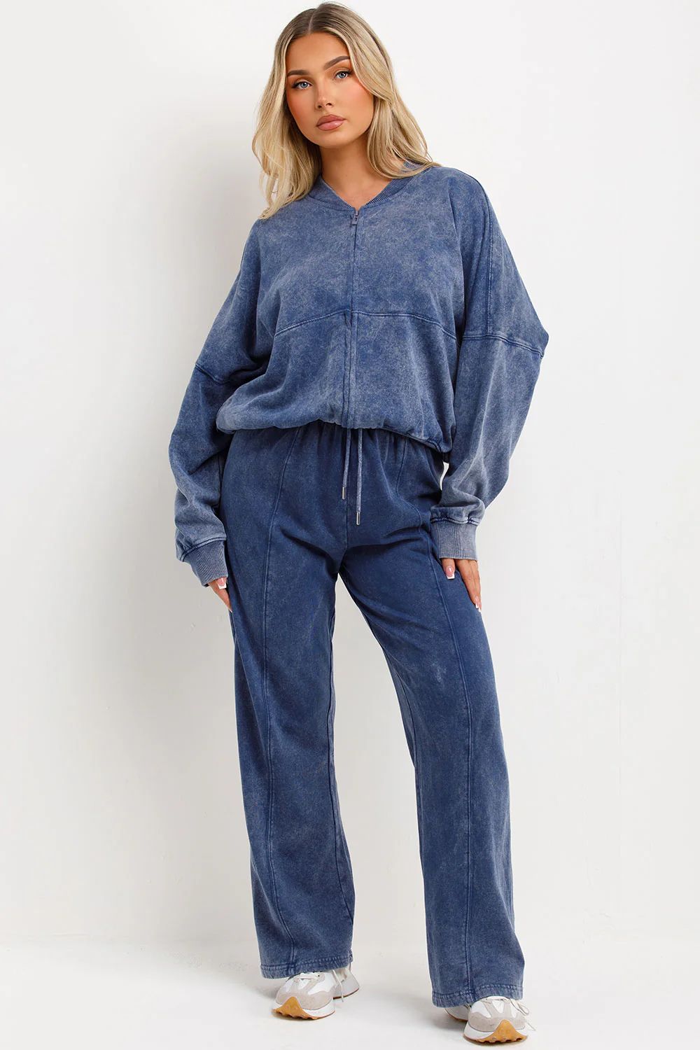 ACID WASH OVERSIZED BOMBER STYLE FLEECE ZIPPER CO-ORD