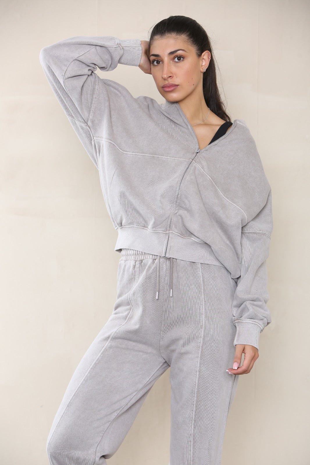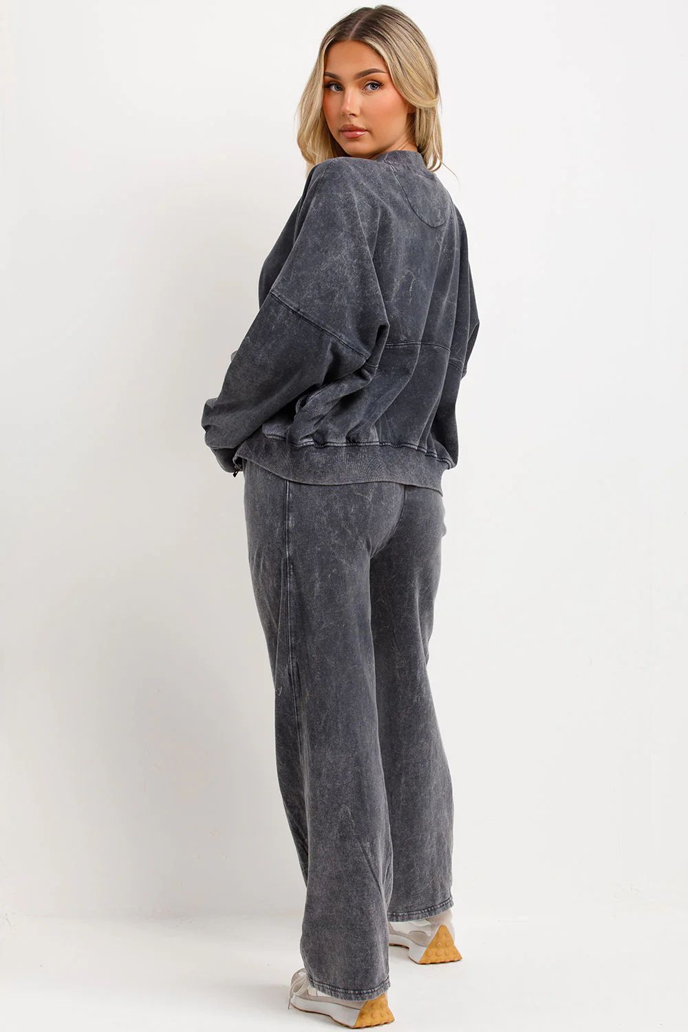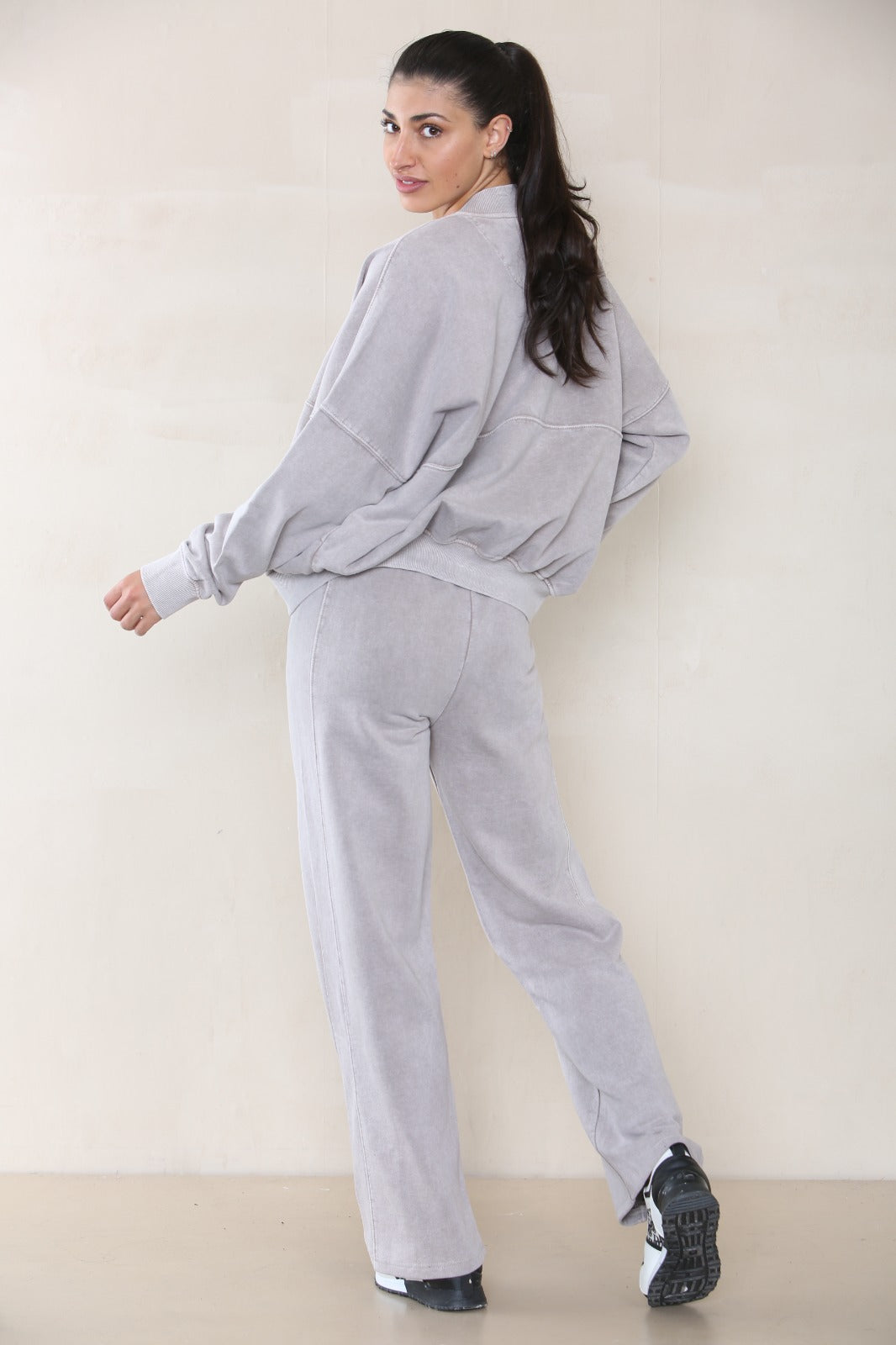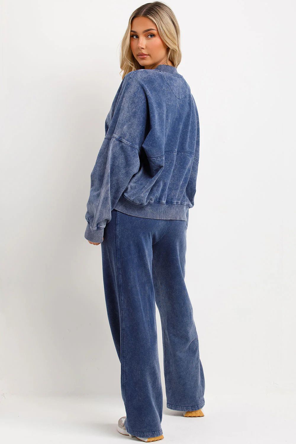 ACID WASH OVERSIZED BOMBER STYLE FLEECE ZIPPER CO-ORD