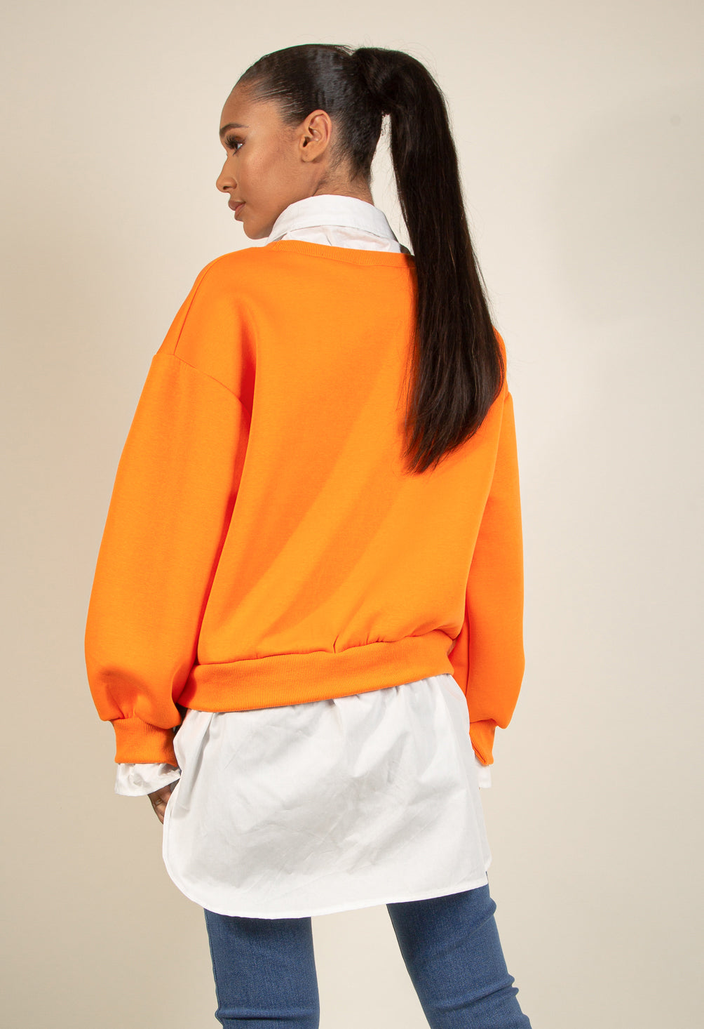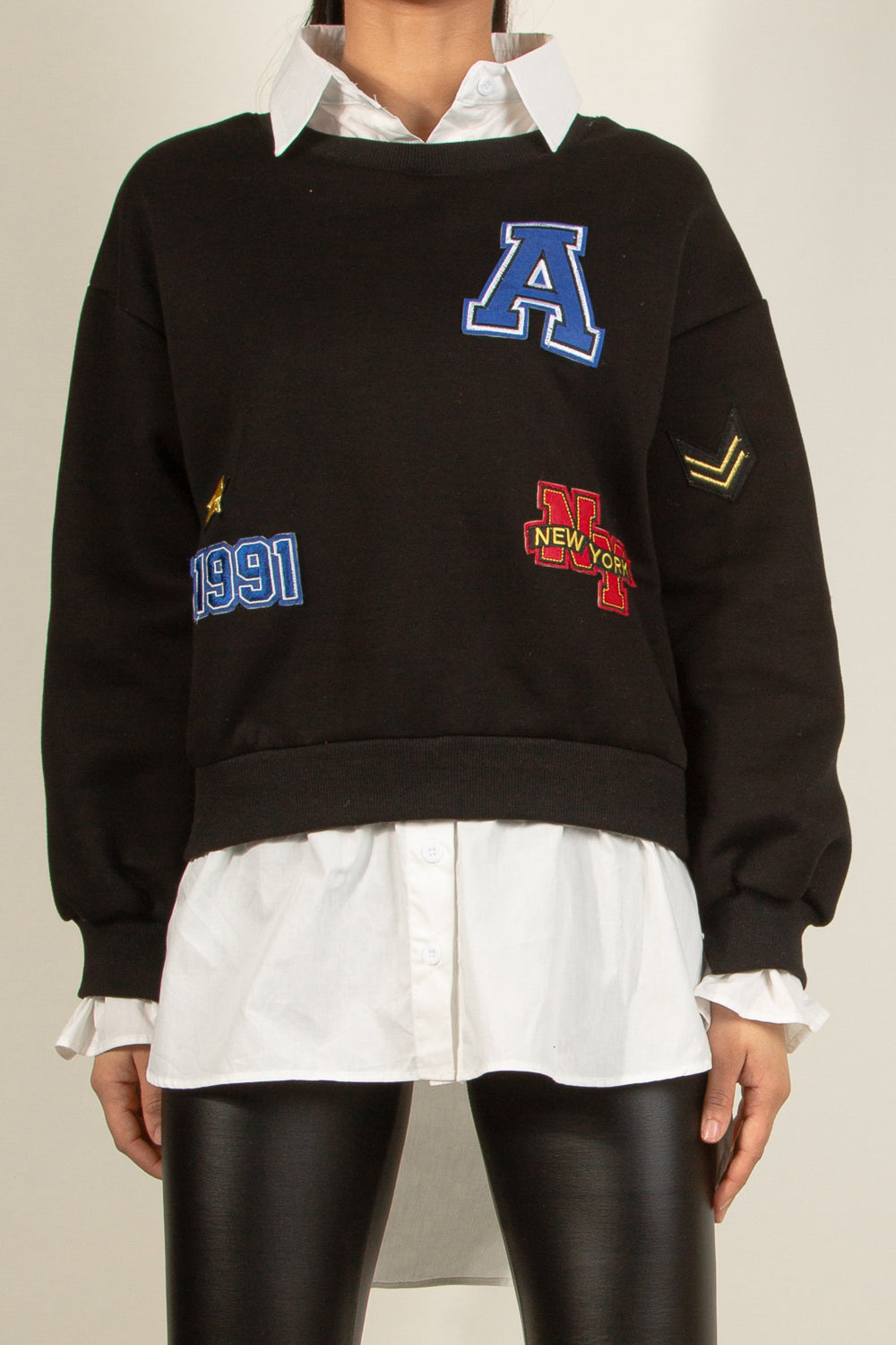 BADGE MOTIF SWEATSHIRT WITH SHIRT UNDERLAY
