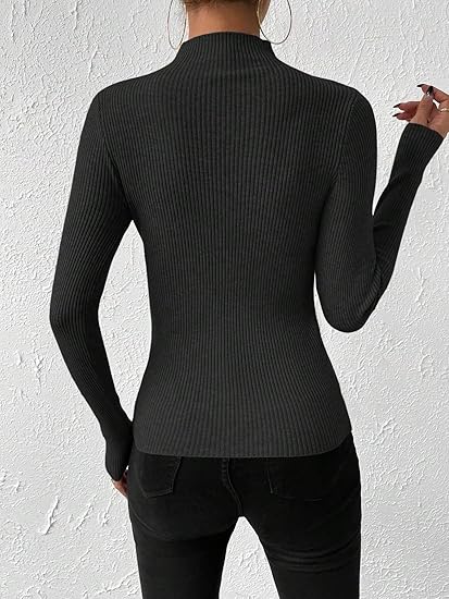 CASUAL RIBBED LONG SLEEVE PULLOVER SLIM FITTED KNIT TOP
