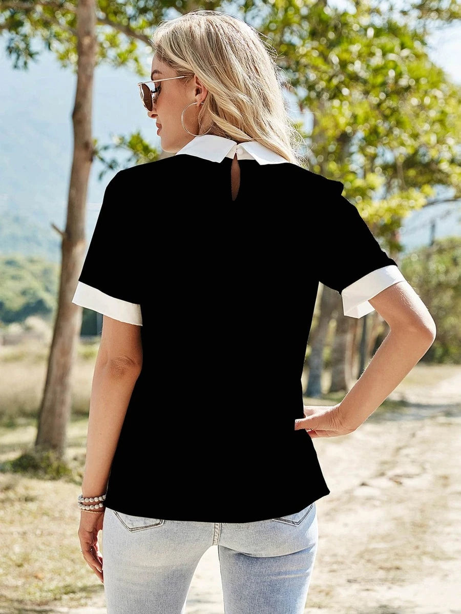 COLORBLOCK CONTRAST COLLAR BLOUSE