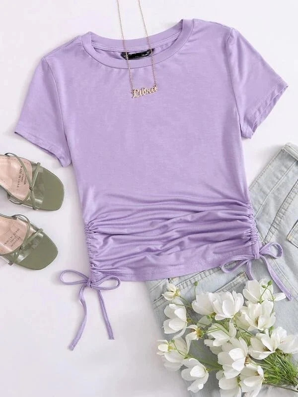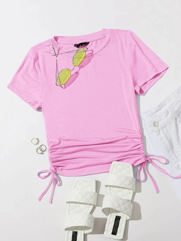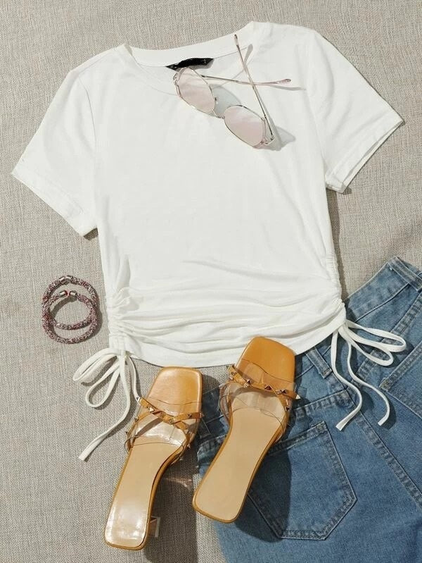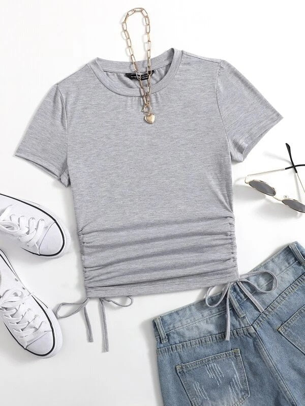 DRAWSTRING SIDE SOLID TEE-BLACK
