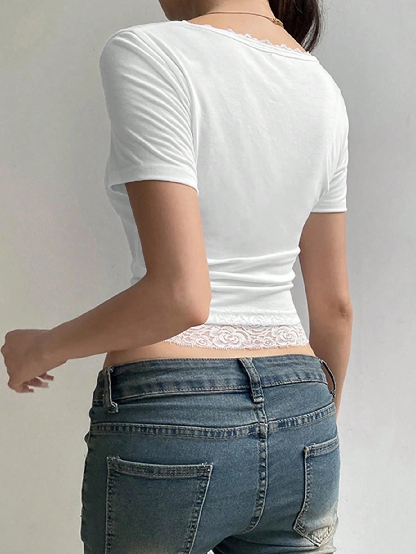 ESSNCE SUMMER SHORT LACE SPLICE TIGHT FASHION TOP