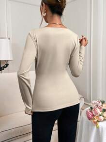 IRREGULAR HEM PLEATED LONG SLEEVE T-SHIRT