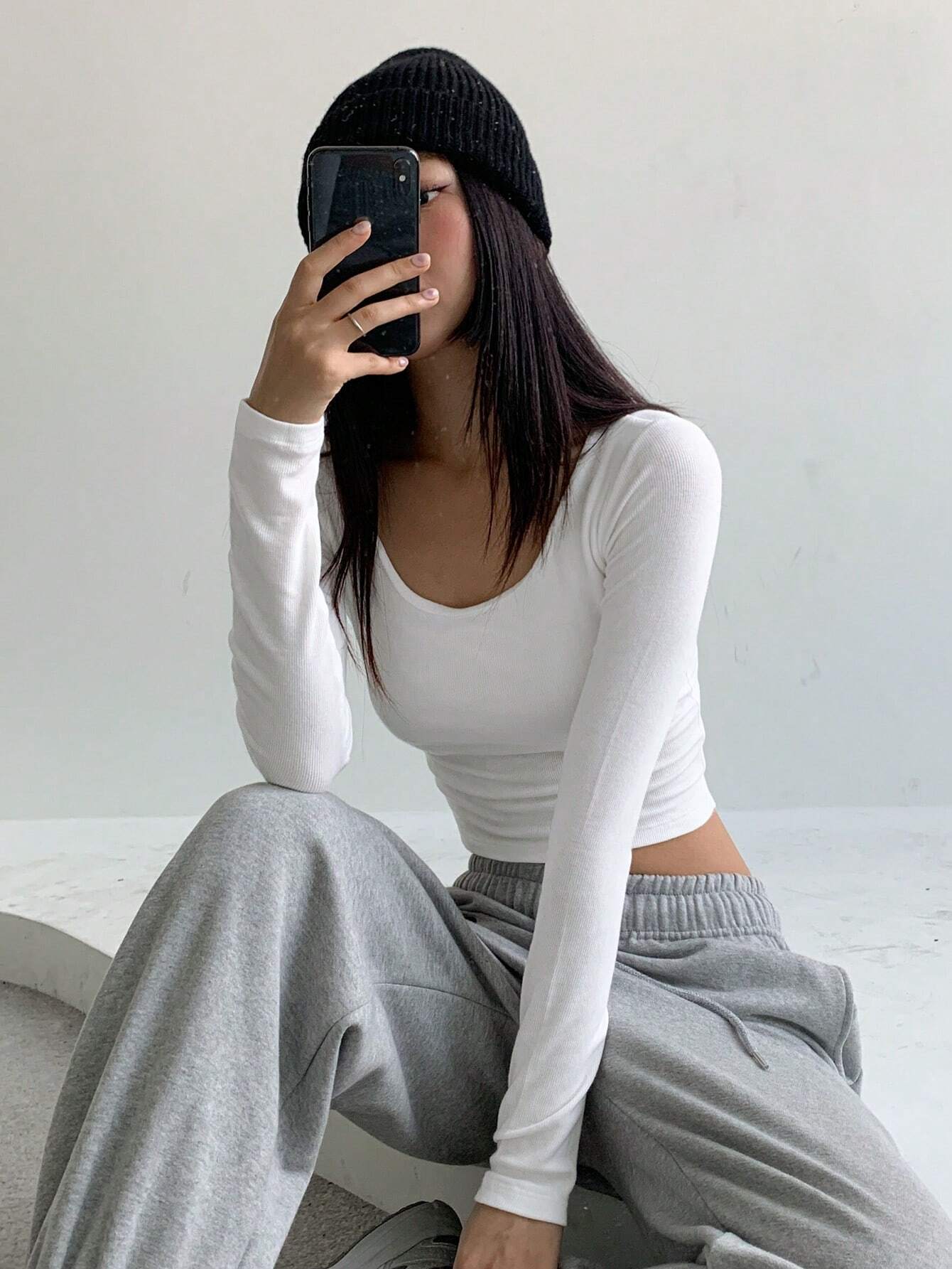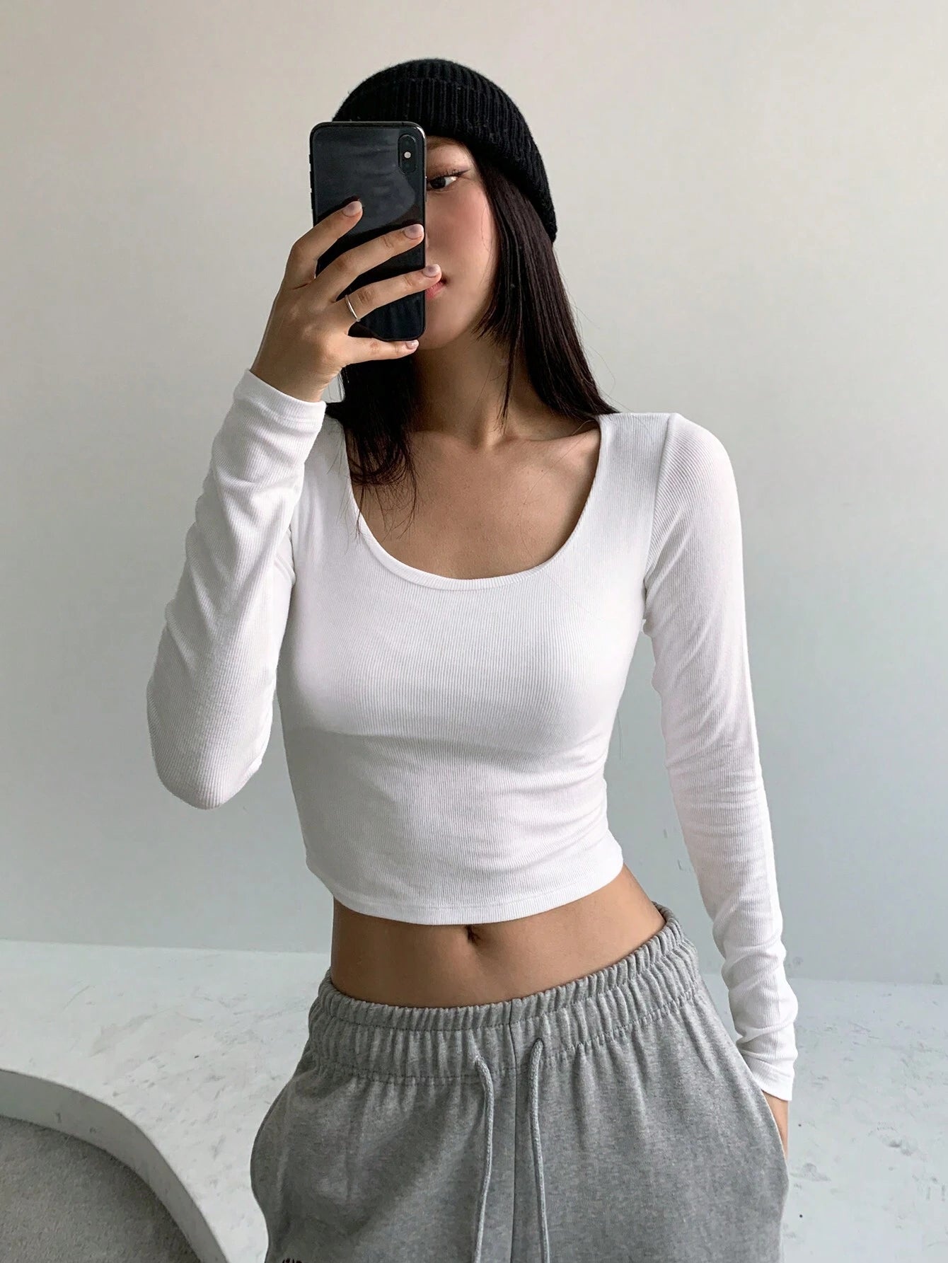 LADIES' CROPPED TIGHT-FITTING T-SHIRT
