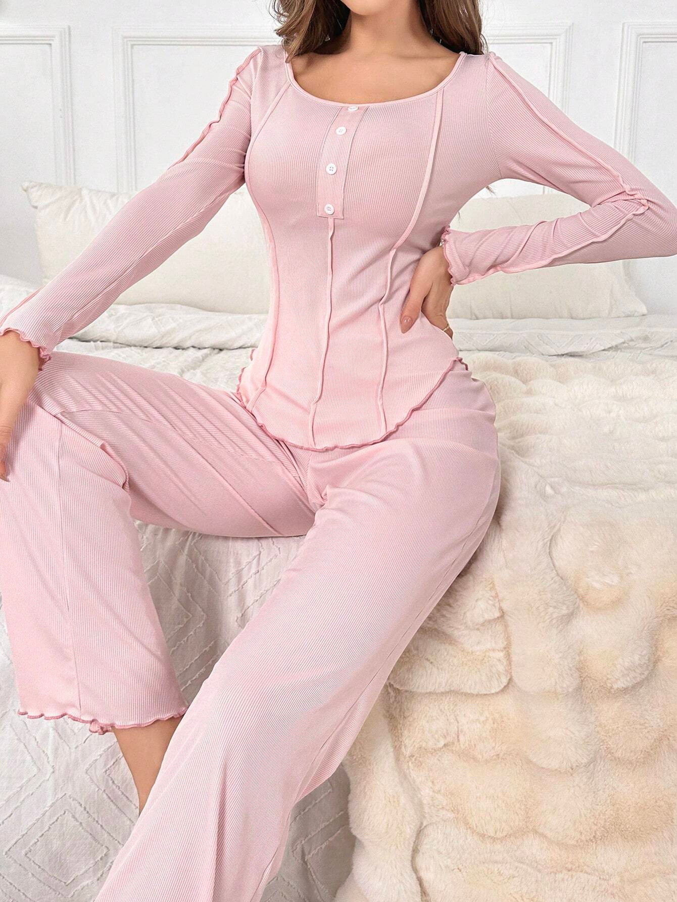 Details: Lettuce Trim, Rib-Knit, Button Front