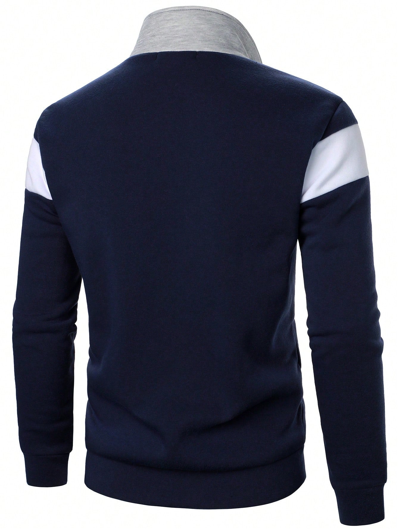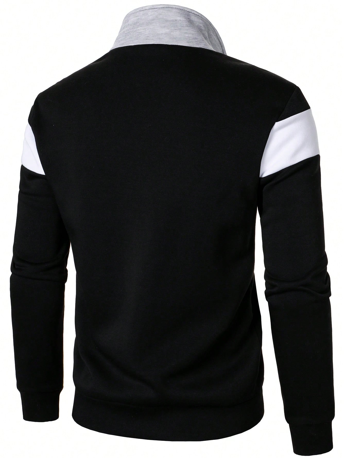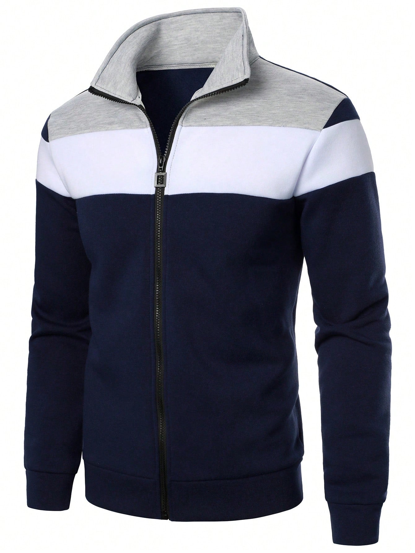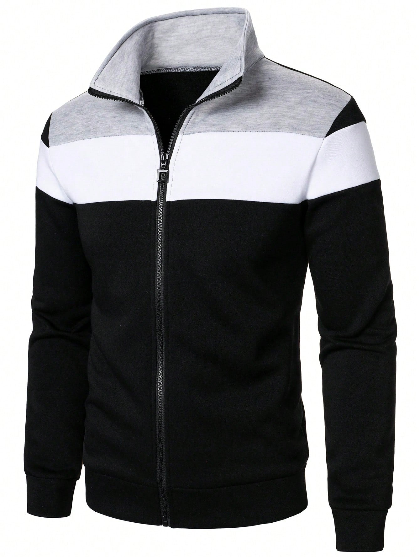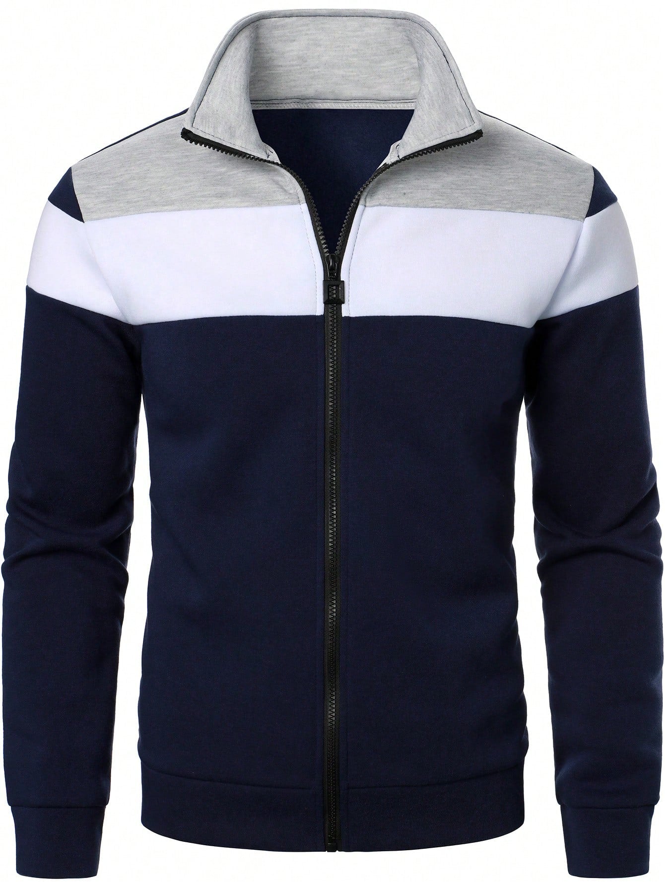 MEN COLOR BLOCK ZIP UP SWEATSHIRT