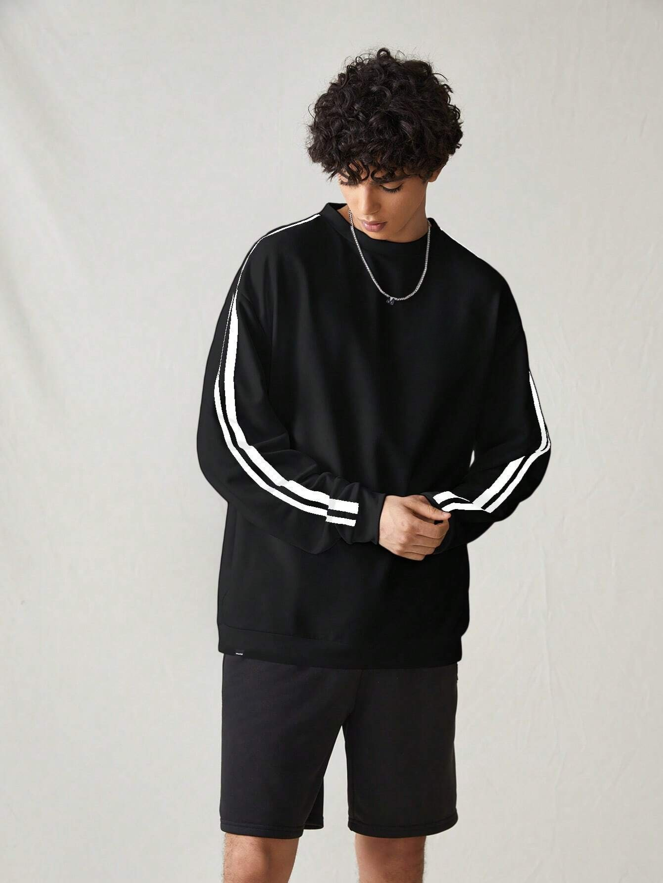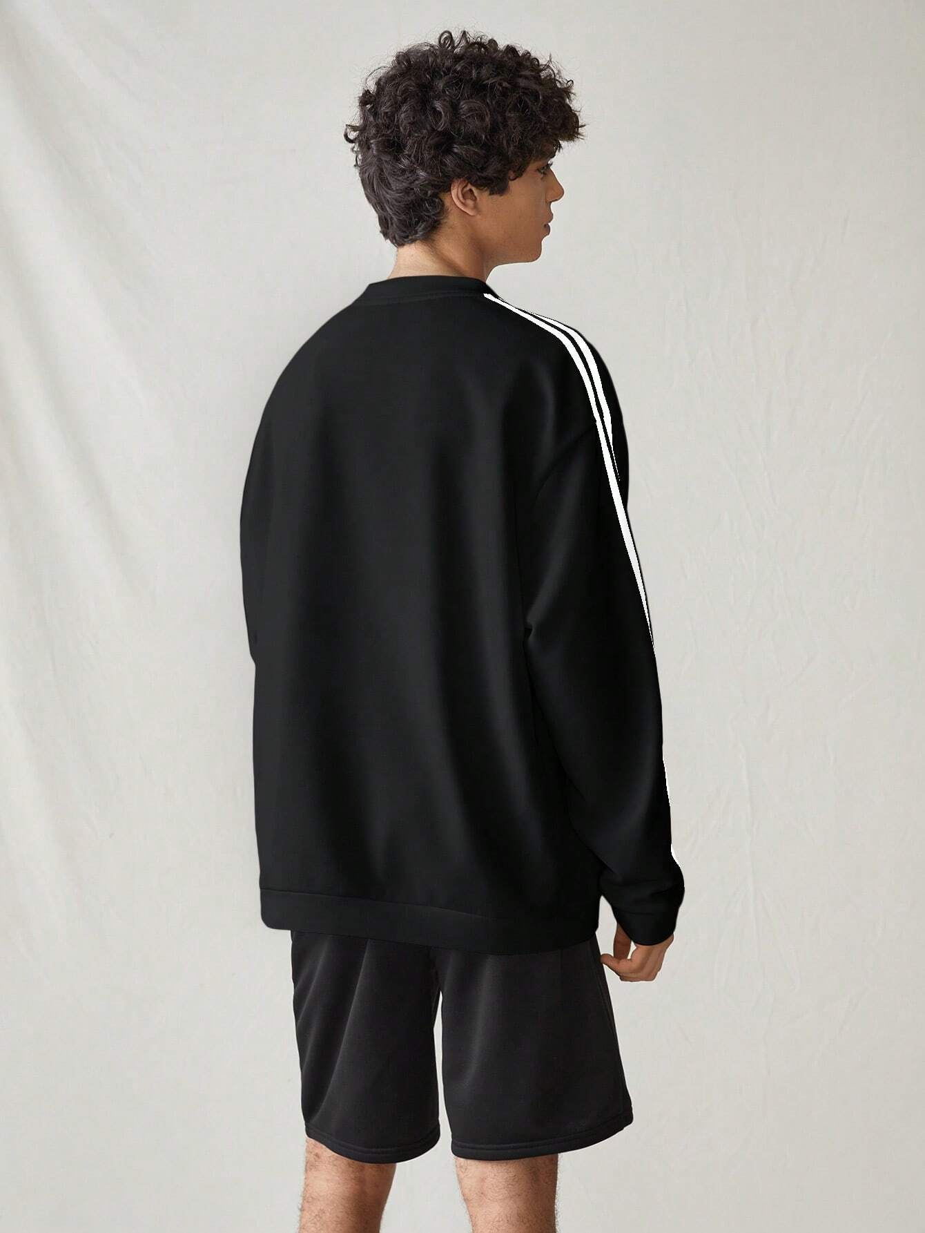 MEN COLORBLOCK STRIPED PATCHED CASUAL LONG SLEEVE SWEATSHIRT