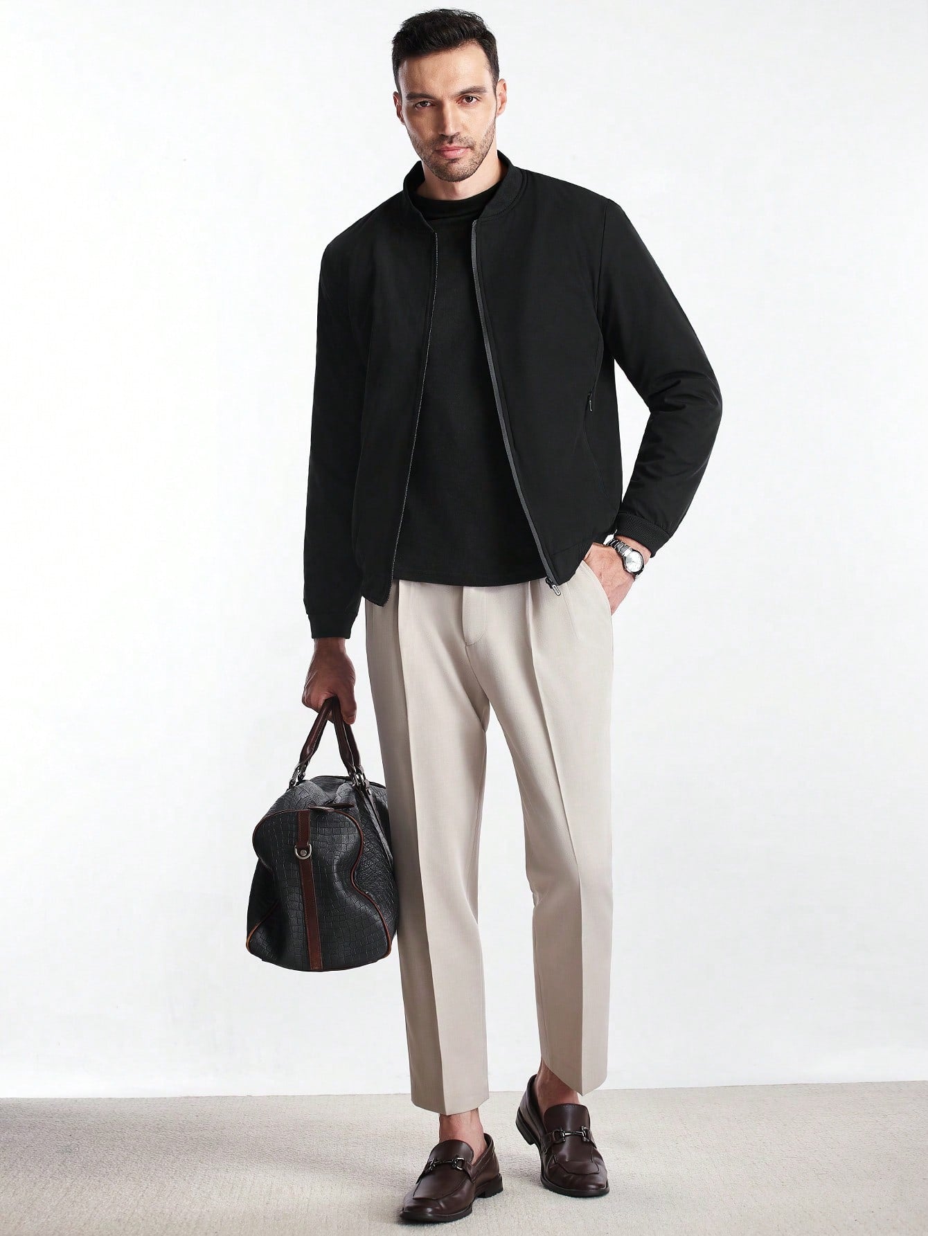 MEN'S CASUAL FASHION STREET MINIMALIST SOLID COLOR FLEECE JACKET