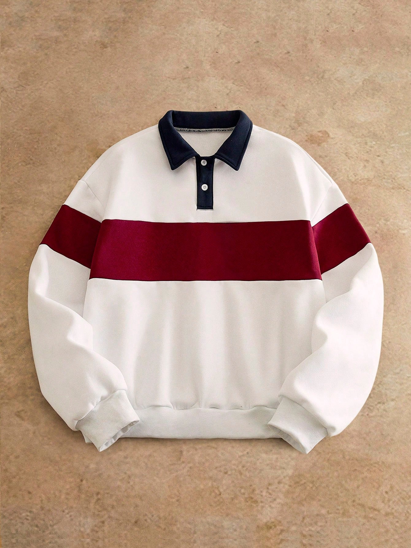 MEN'S CASUAL LOOSE FIT POLO LONG SLEEVE SWEATSHIRT