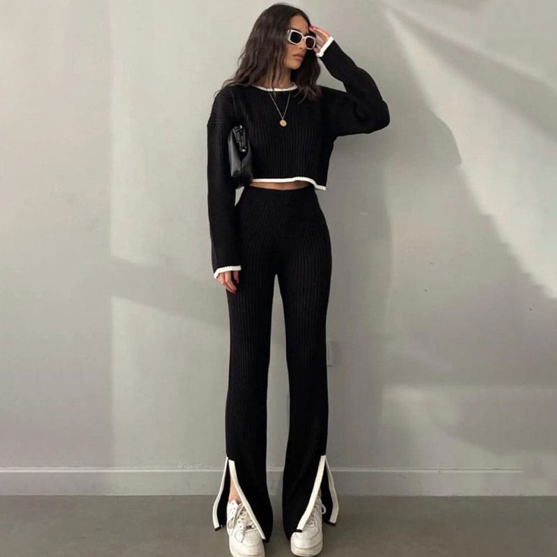 Stylish Pit Stripe Jacquard Sweater Two-piece Set