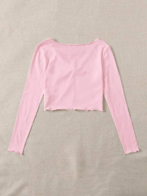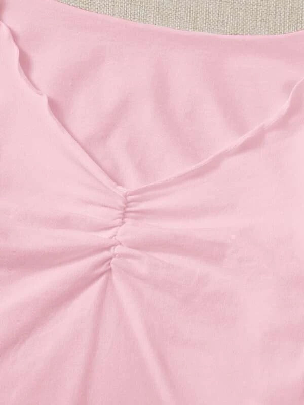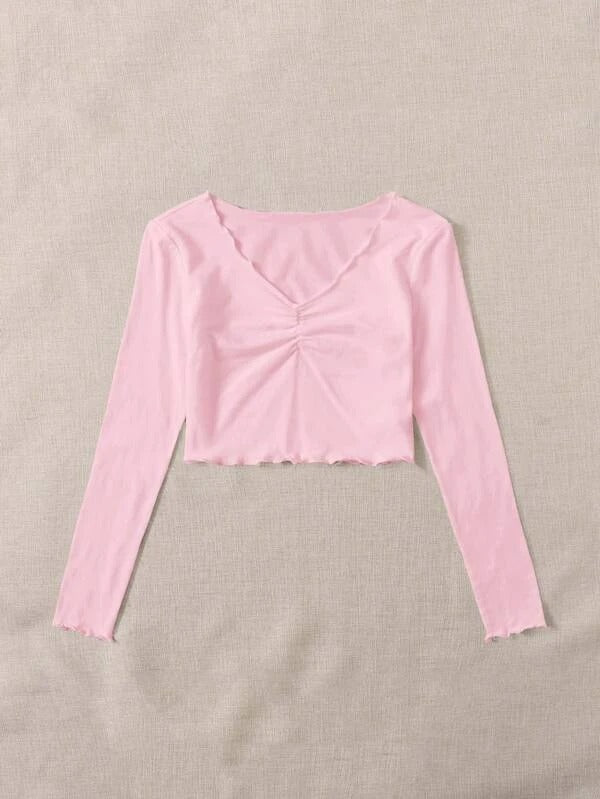 RUCHED LETTUCE-EDGE CROPPED TEE BABY PINK
