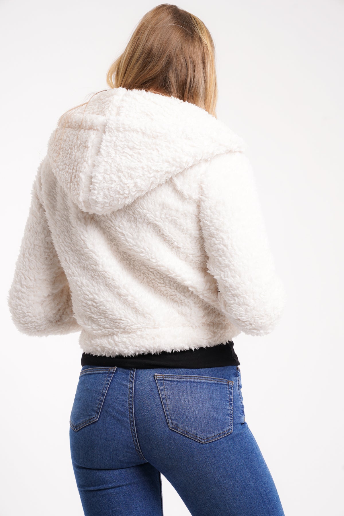 SHERPA FLEECE HOODIE JACKET - CREAM