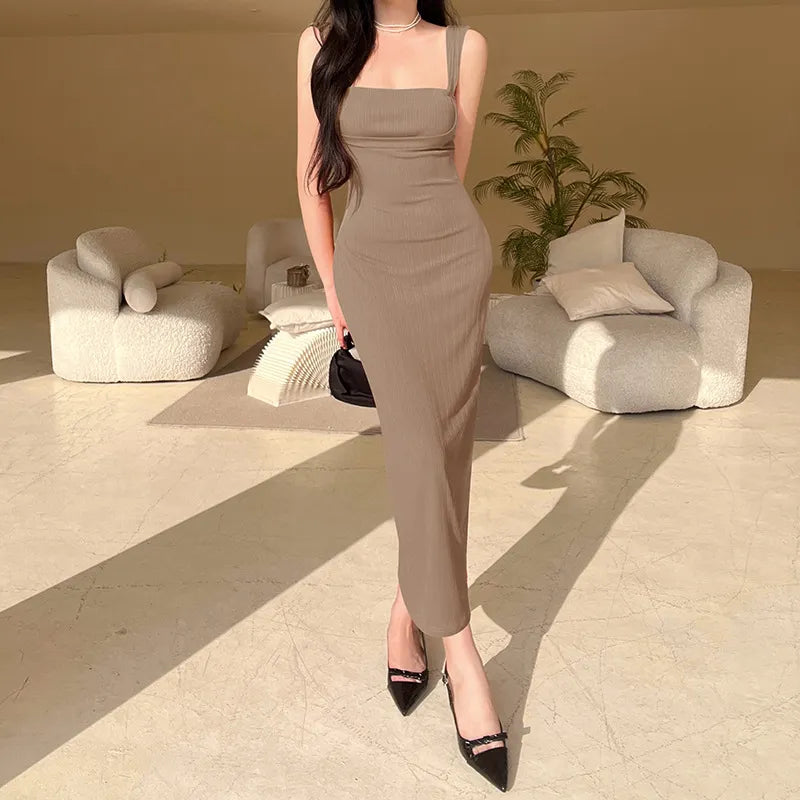 SLEEVELESS SQUARE NECK PLAIN MAXI