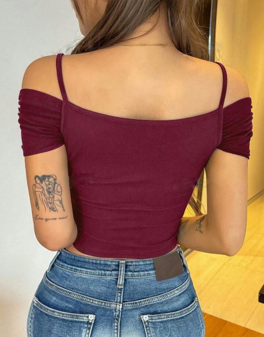 WOMEN OPEN SHOULDER WRAPPED TIGHT T-SHIRT