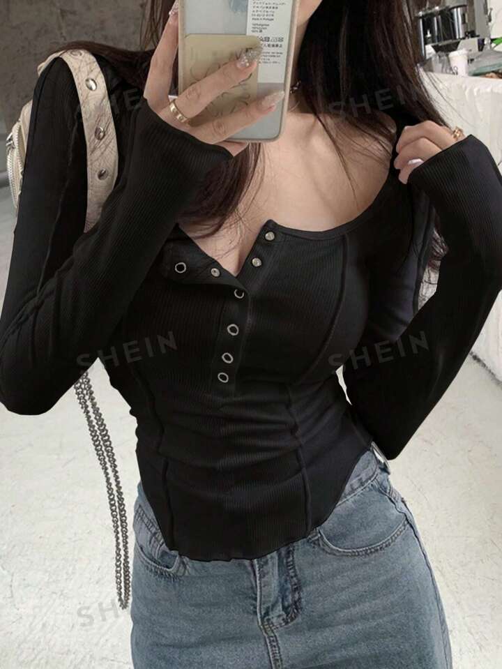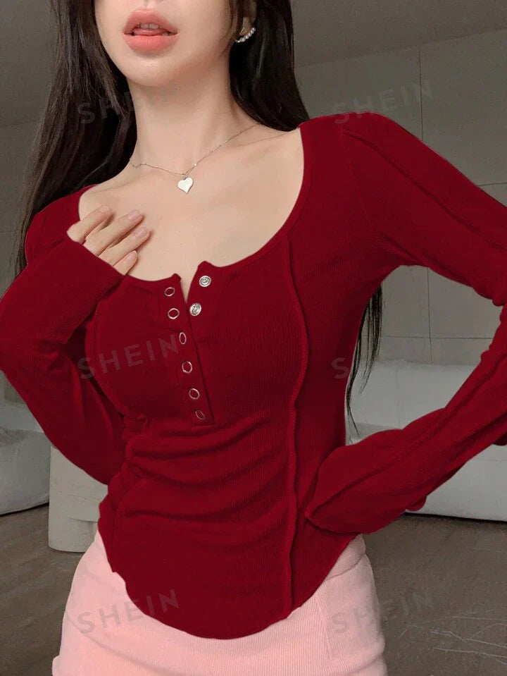 Details: Rib-Knit, Button Front