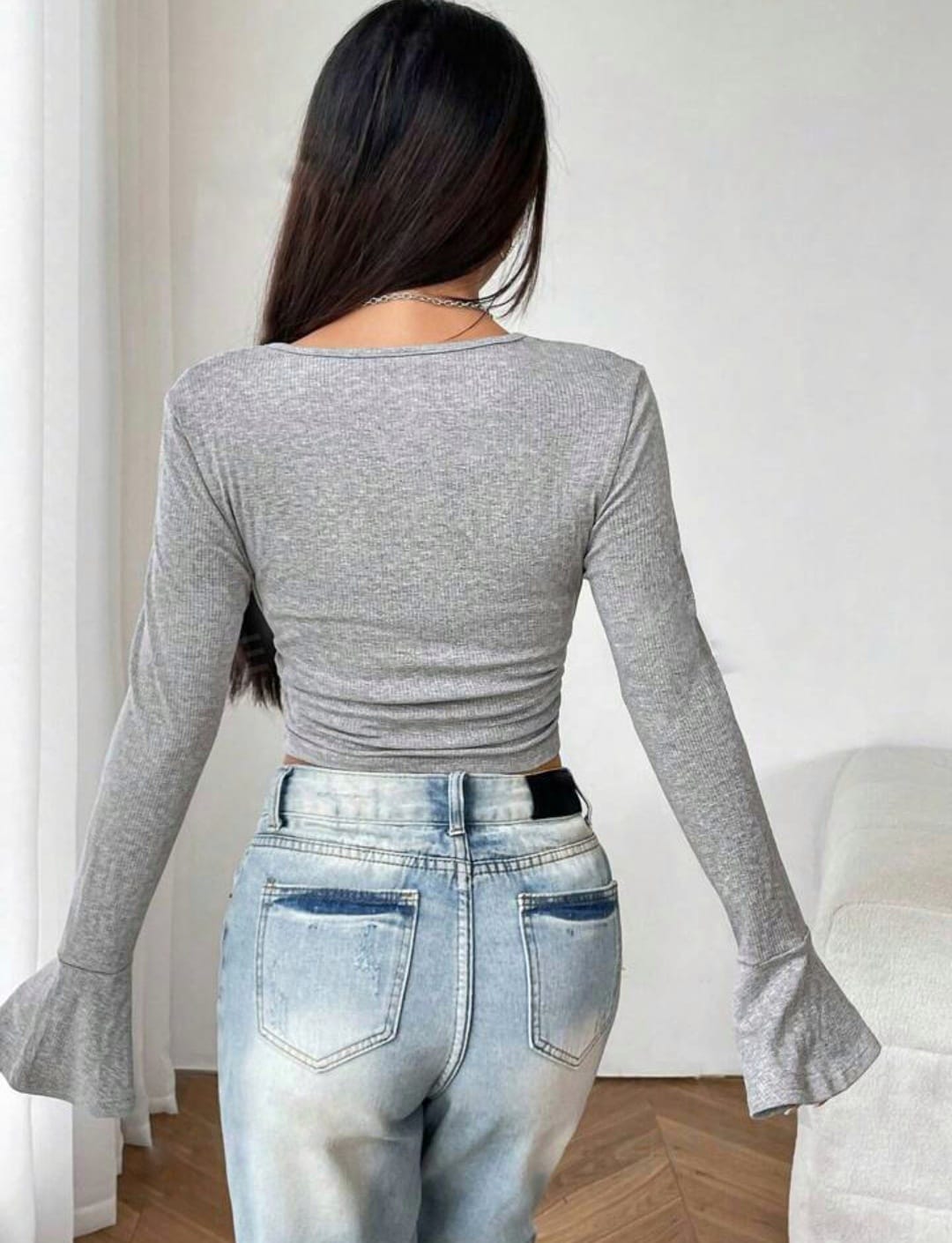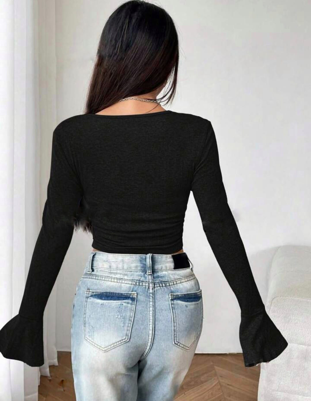 TIE FRONT CROPPED T-SHIRT AND FLARE SLEEVES