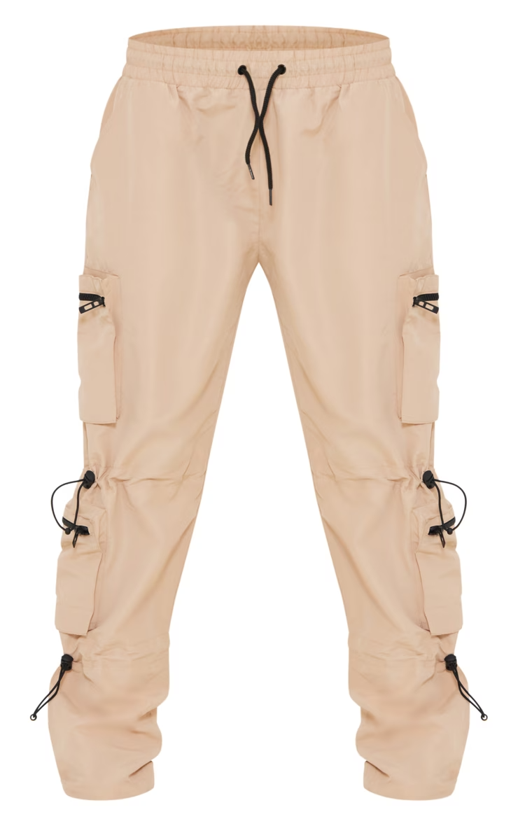 These Beige toggle detail cargo trousers are a great way to add some drama to your weekend wardrobe. The Beige material and toggle detail make them a stylish and unique choice, while the drawstring waist and wide leg fit ensure a comfortable and flattering fit. Team them with a statement bandeau for a night out with friends, or dress them down with a black tee and sneakers for a more casual look.