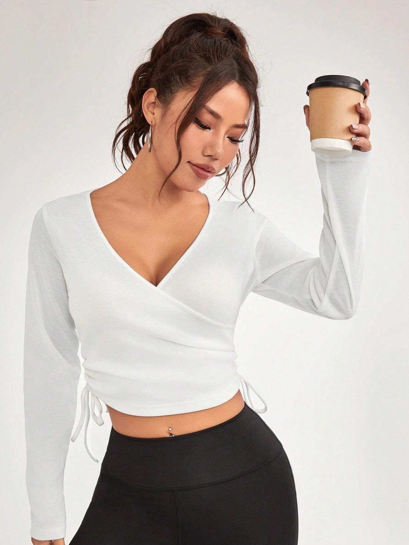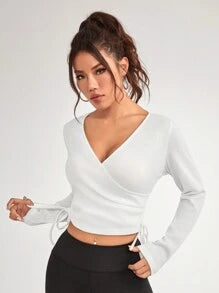 V-NECK LONG SLEEVE WRAP TOP FOR SPORTS AND LEISURE