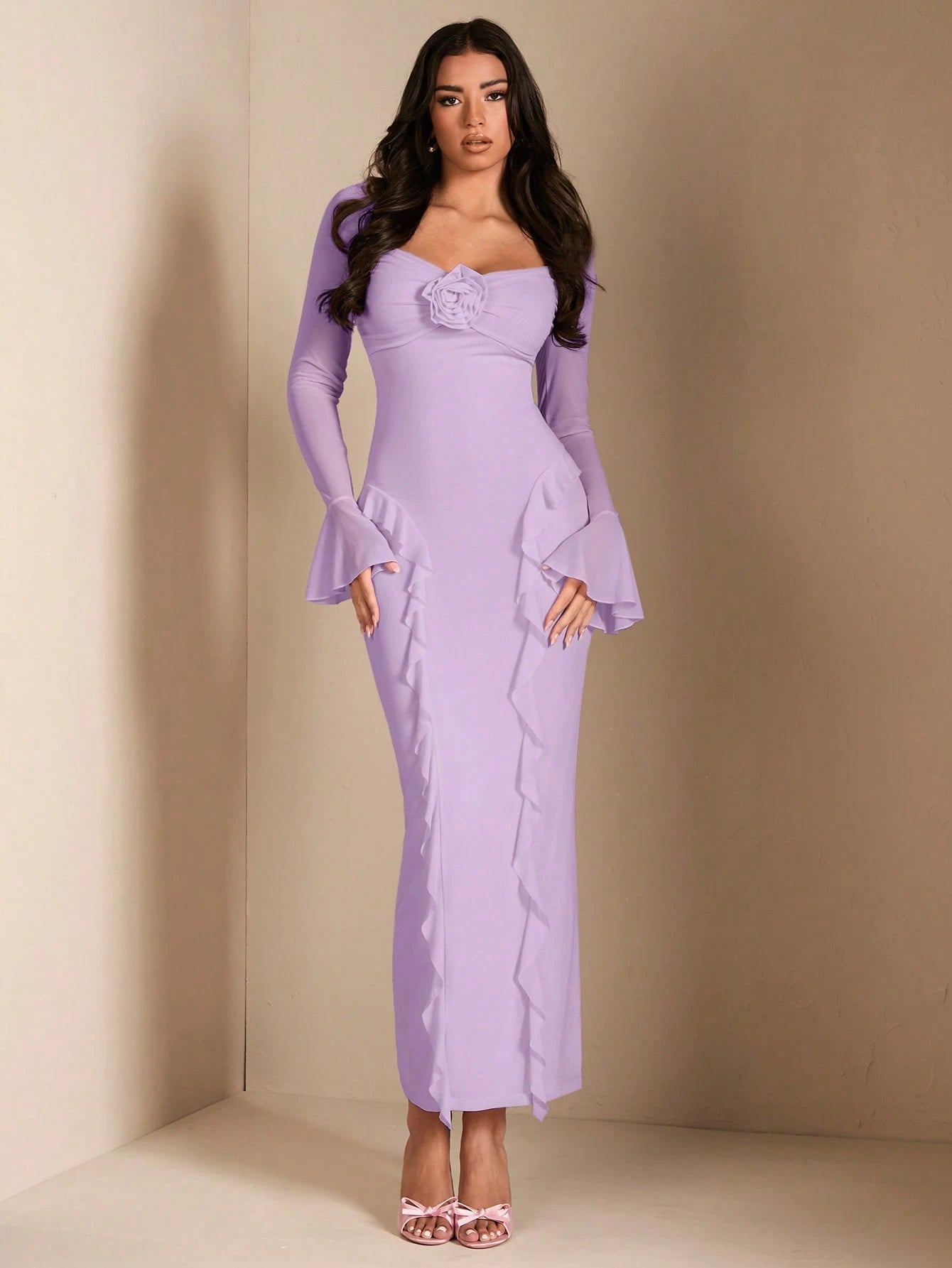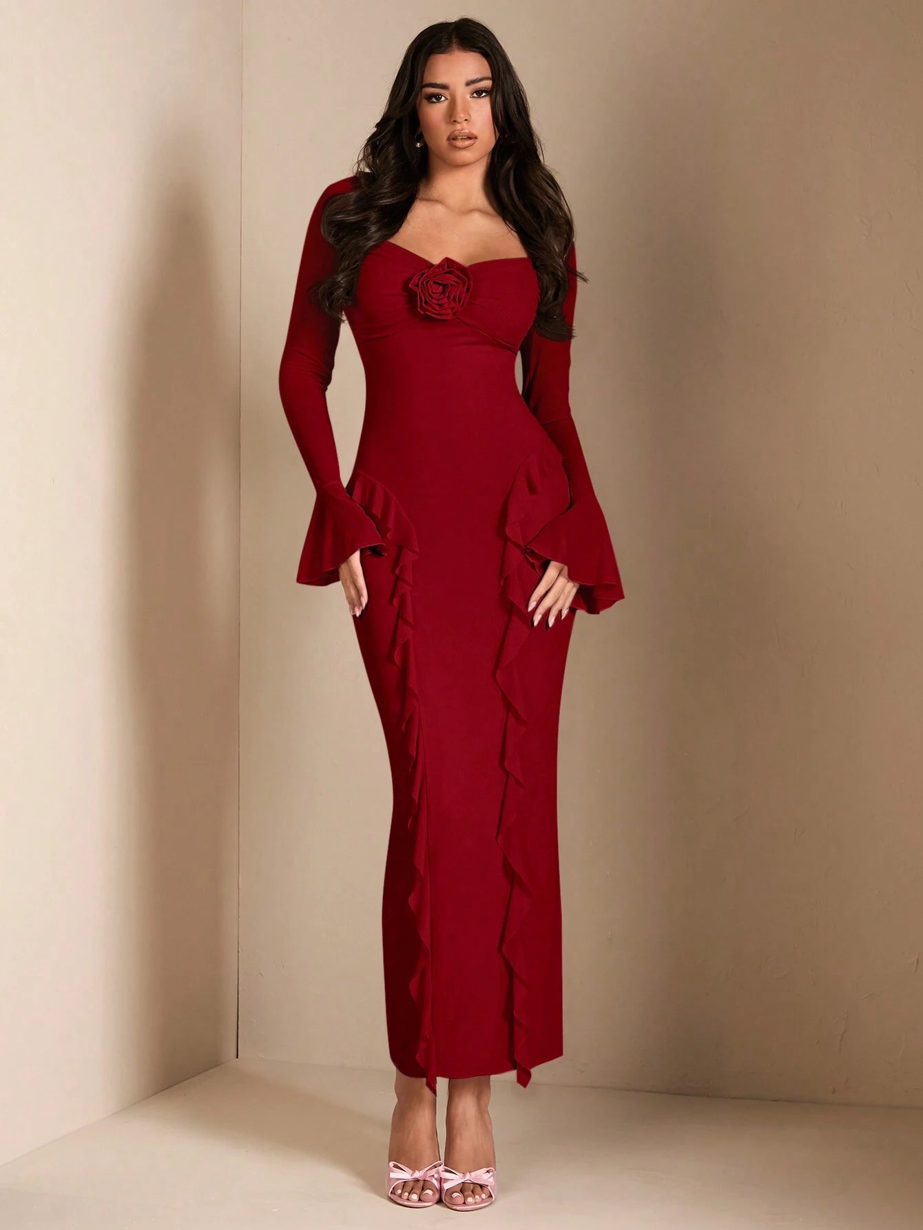 Details: Ruffle, Ruched Bust, 3d Rose