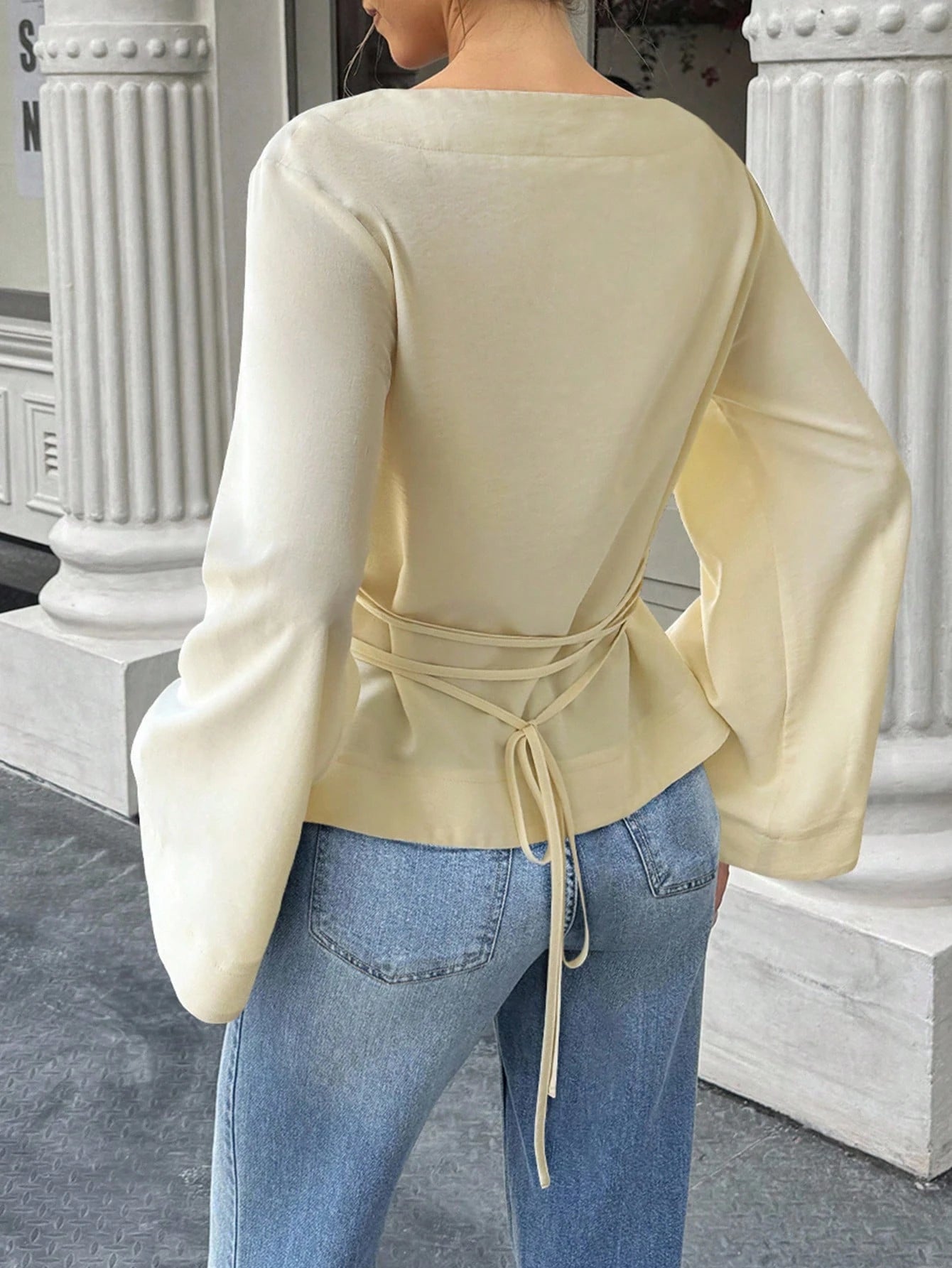 WOMEN'S FITTED WAIST, FLARED SLEEVES TOP