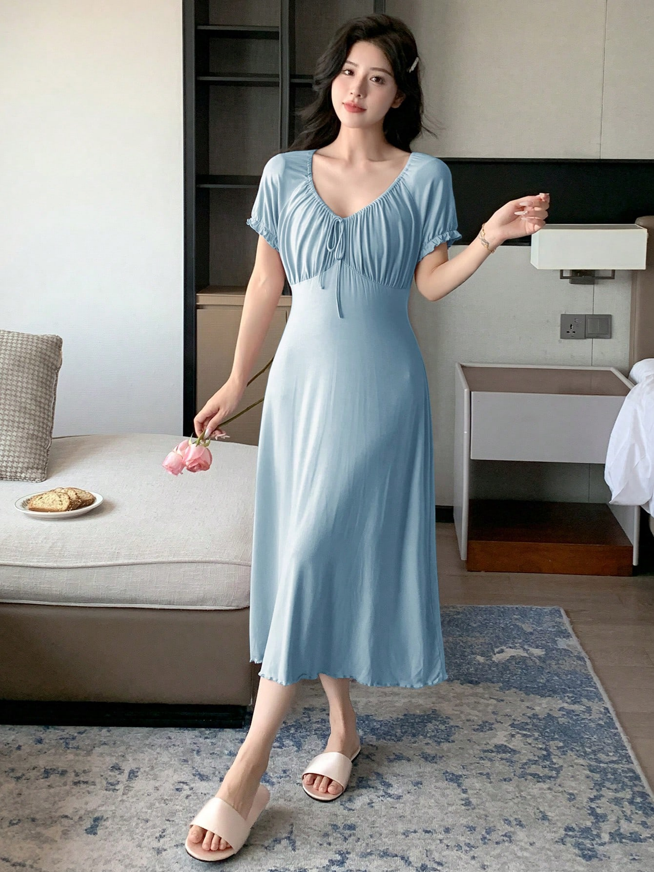 WOMEN'S FRENCH-STYLE DRAWSTRING LONG DRESS
