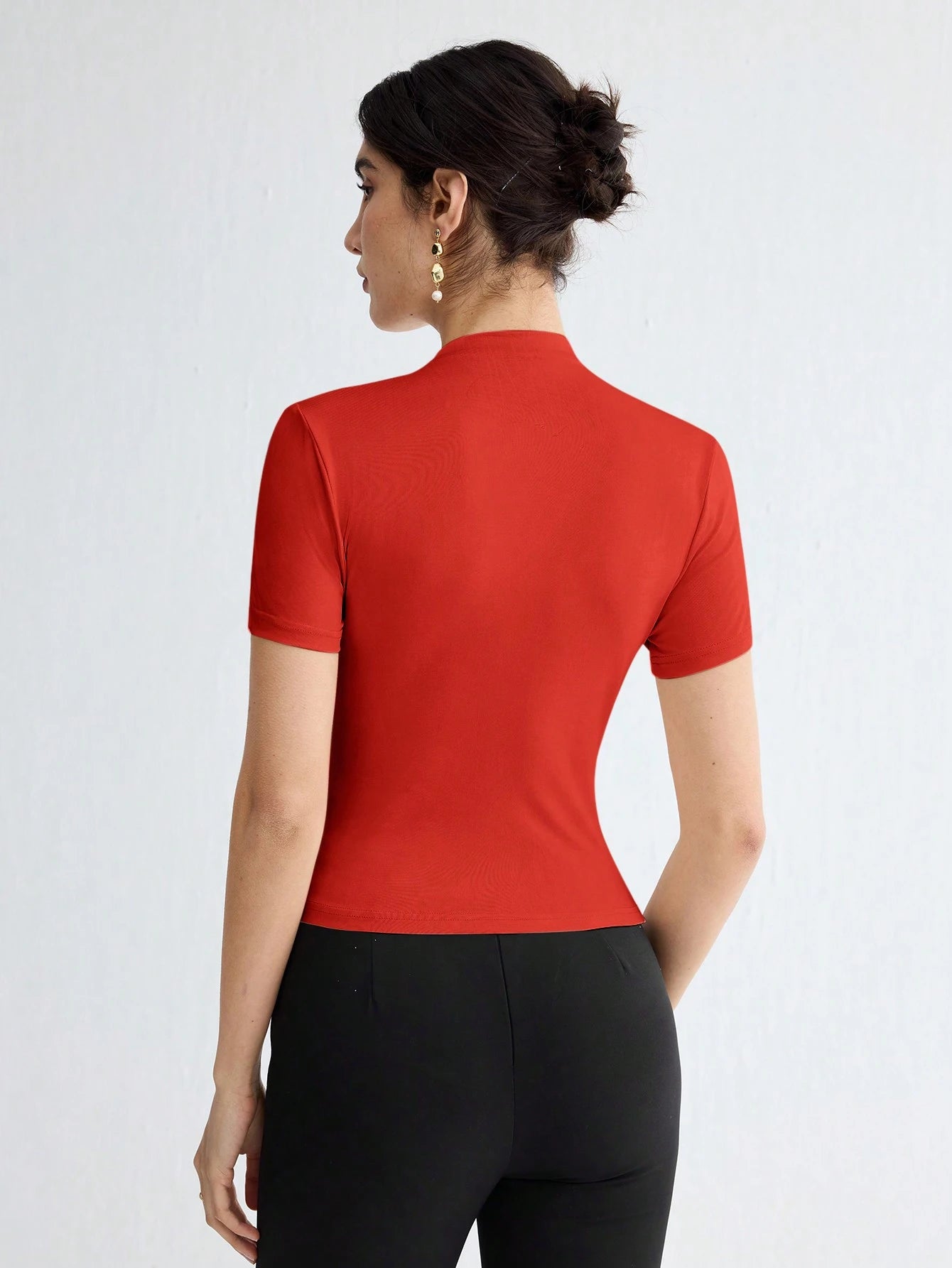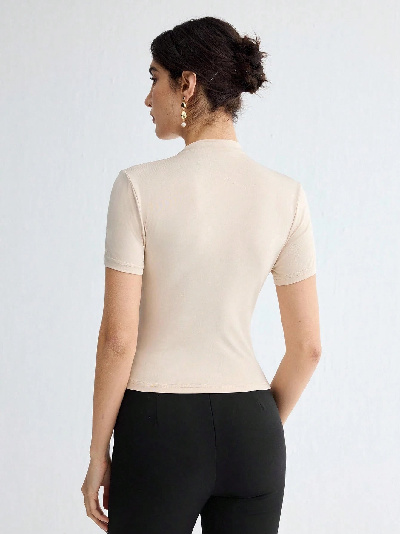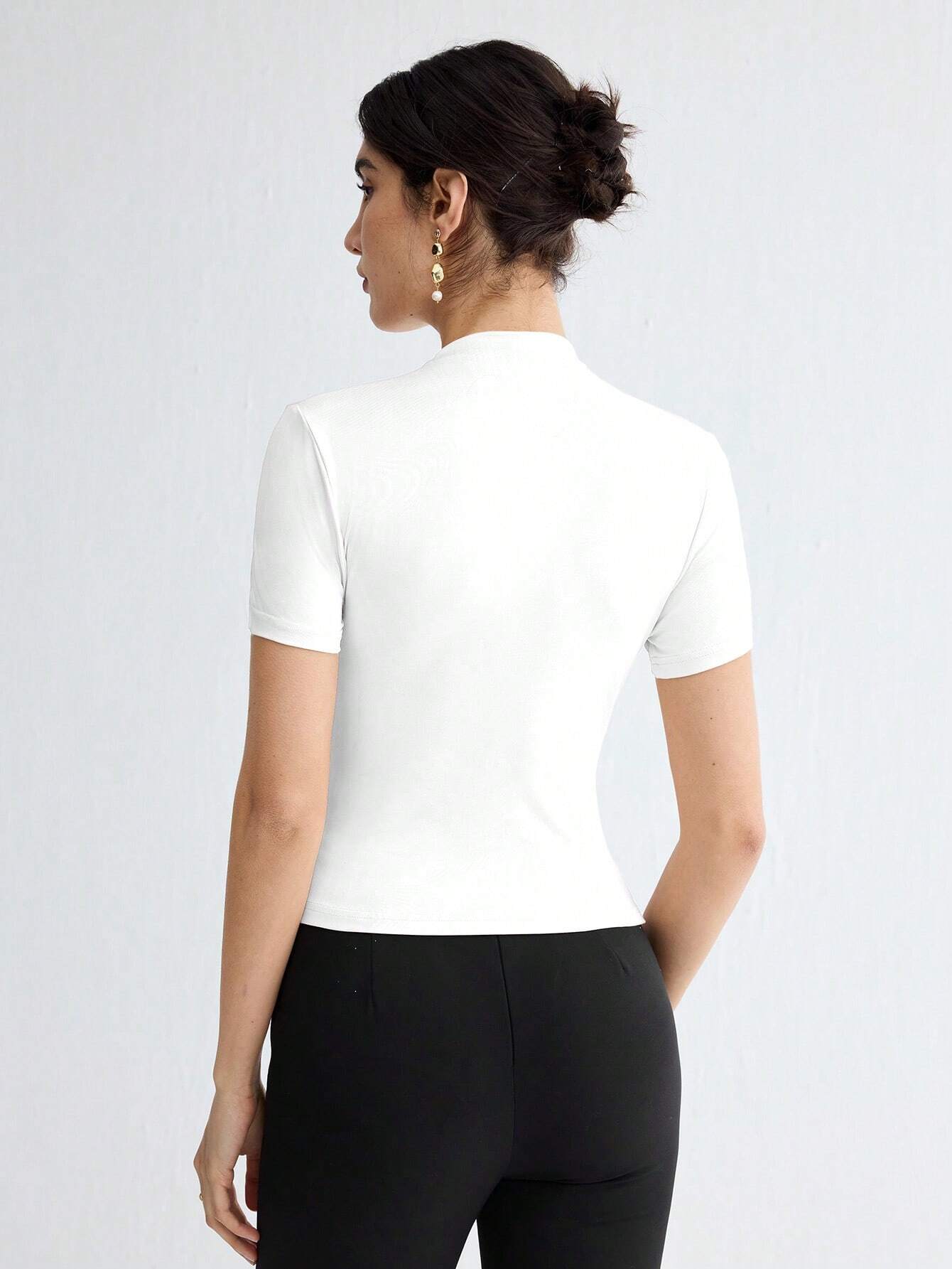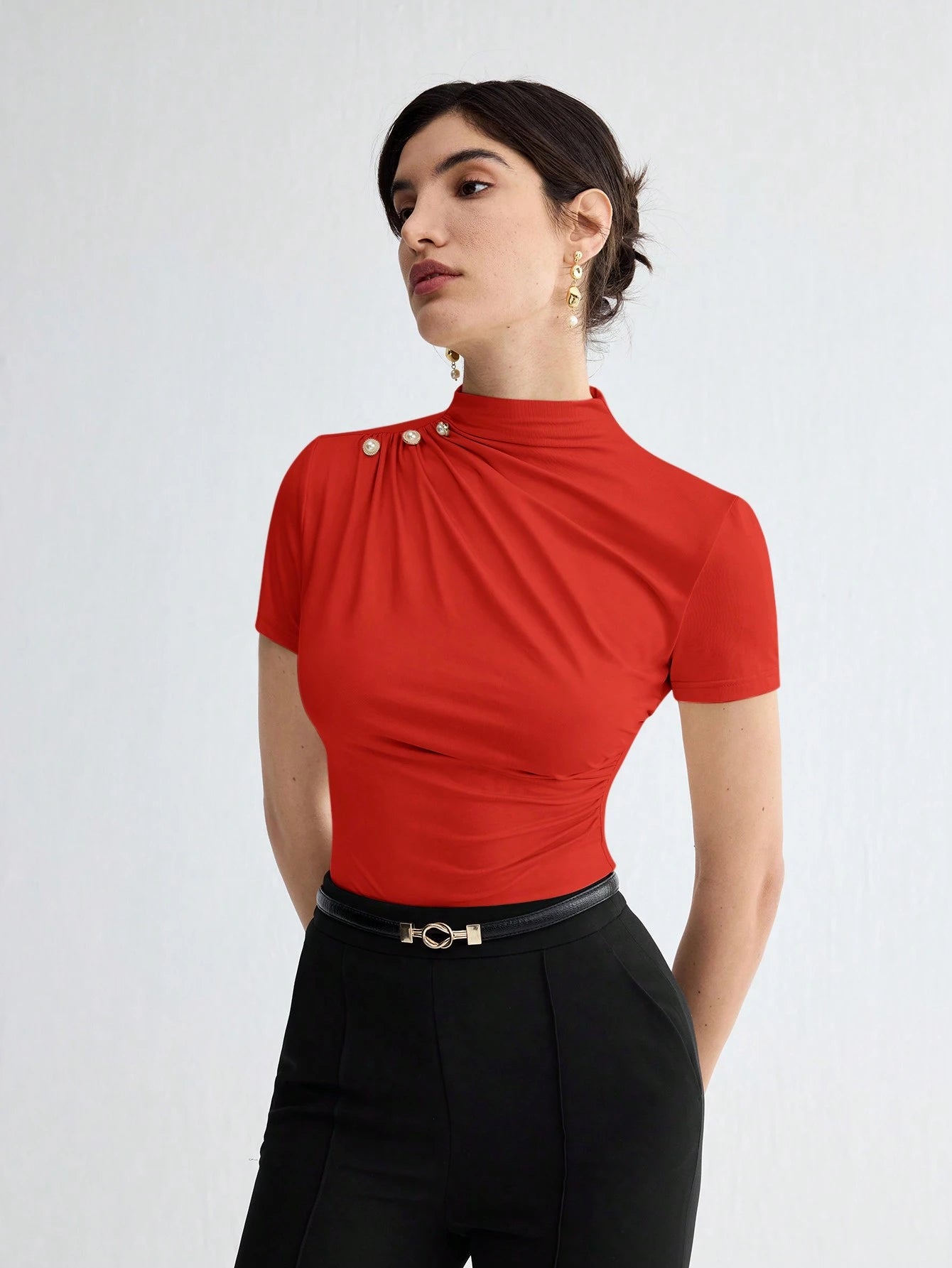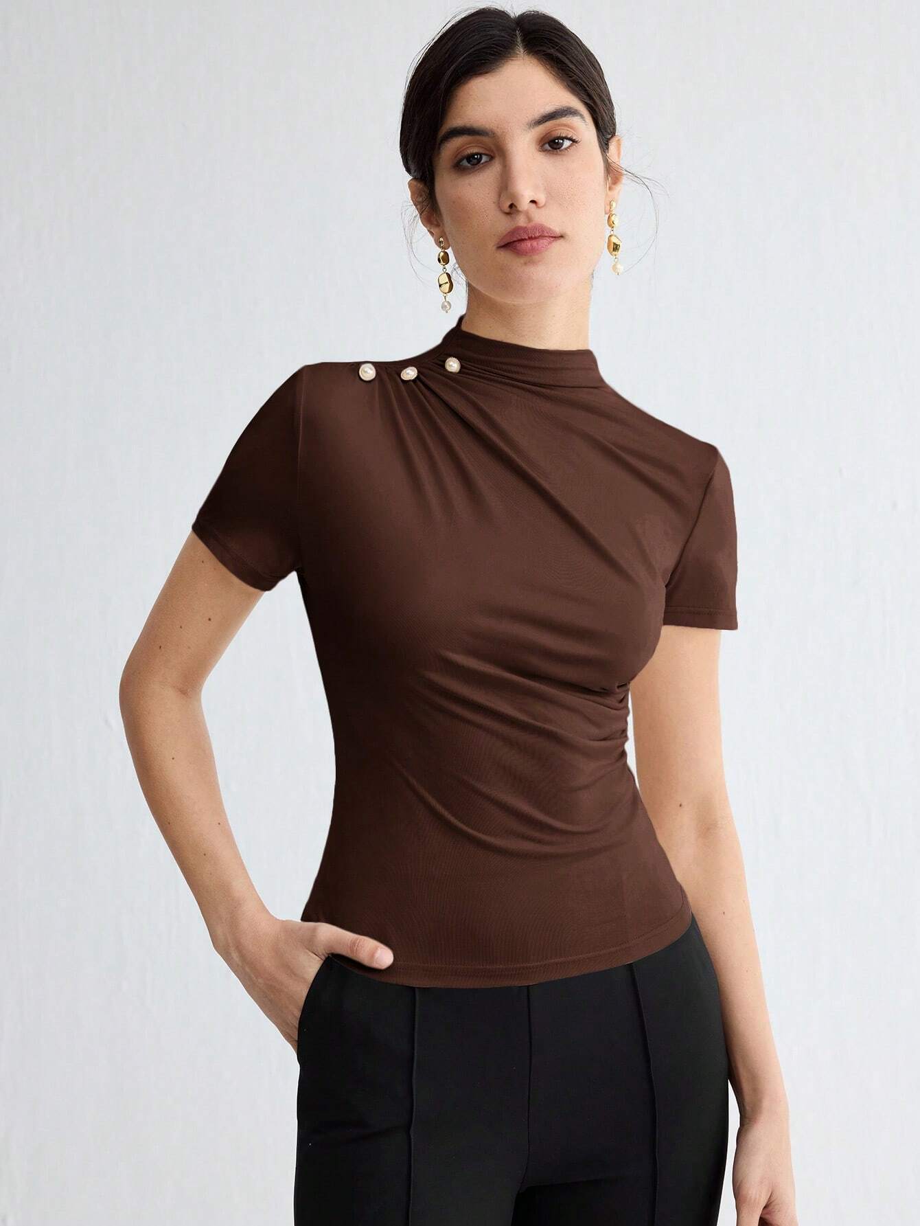 WOMEN'S SOLID COLOR PLEATED ELEGANT SHORT SLEEVE TOP