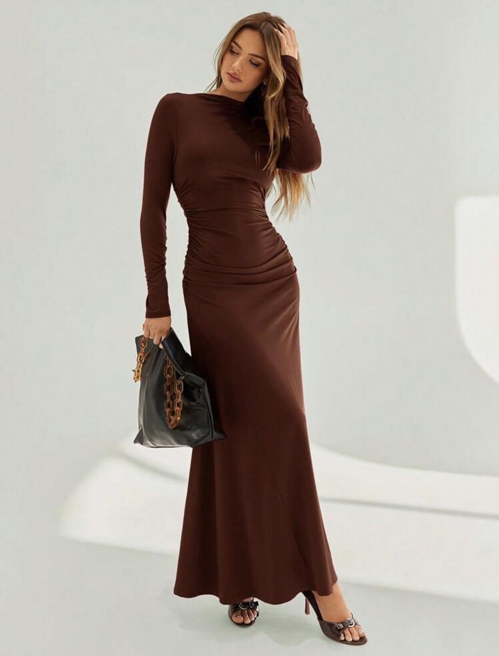 WOMEN'S STAND COLLAR LONG SLEEVE PLEATED DRESS