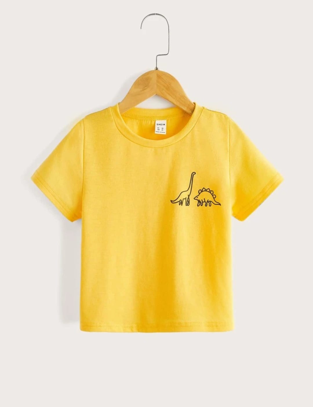 YOUNG BOY FASHIONABLE DINOSAUR PRINTED ROUND NECK T-SHIRT